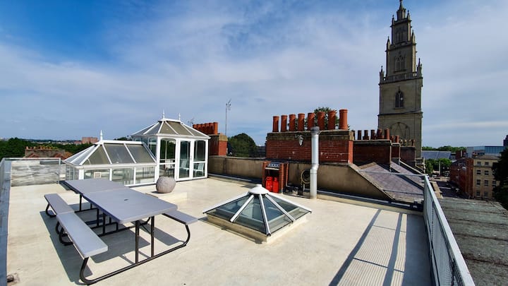 宽敞的私人屋顶花园,配备烧烤设施,景观非常好