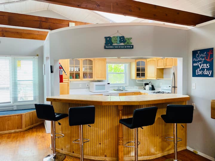 你有没有对某个房源一见钟情的经历? 我们就是在这里宽敞的天光海滨度假屋——距离海滩和海湾仅有一个街区。 走上楼,您会看到一个宽敞的天光公寓,拱形天花板高耸,还有带浸泡浴缸的加大双人床套房。 楼下有一间宽敞的客厅,配有街机篮球。 两个厨房都很宽敞,储备充足。 在外面,您可以享用共用露台、烧烤炉和室外淋浴。 这里是放松身心、恢复精力、留下难忘回忆的完美大本营。