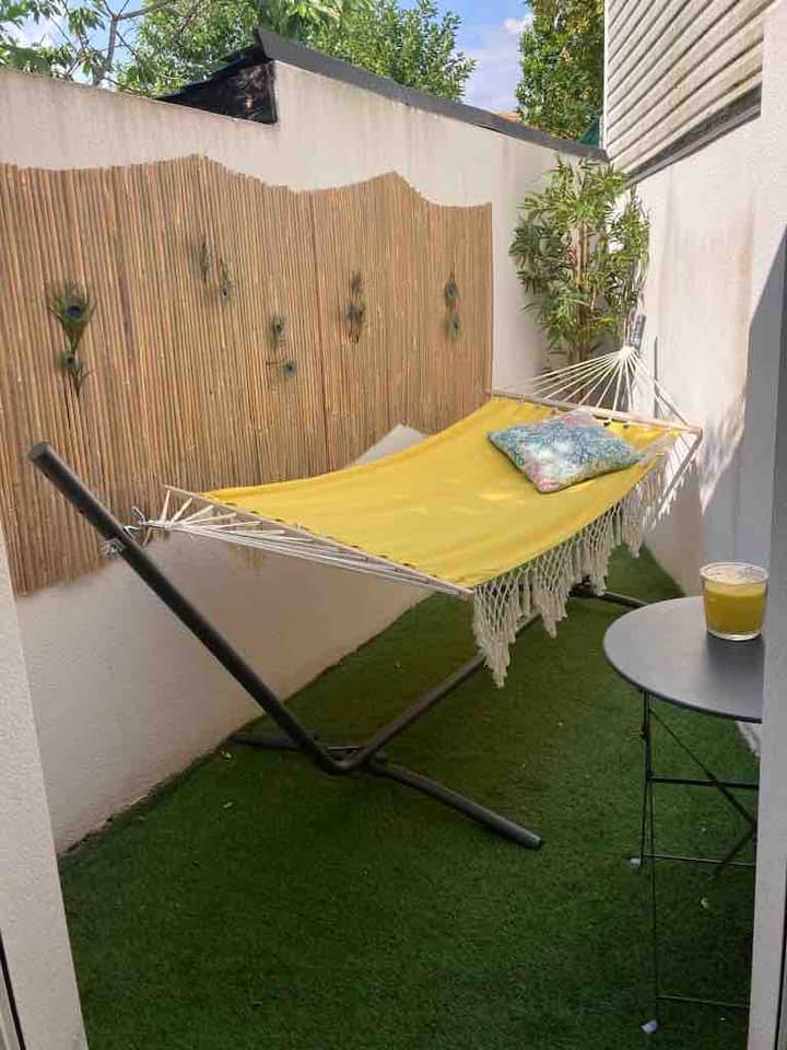 三卧室复式房源,带庭院,距离海滩400米