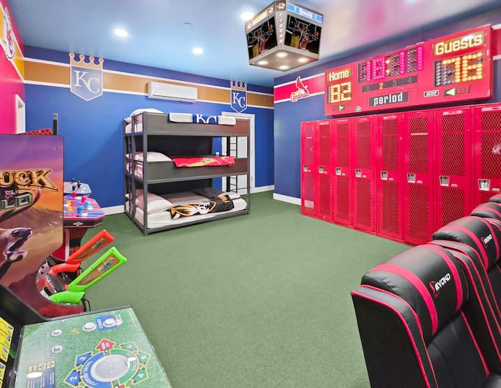 大型体育主题游戏室,配备: