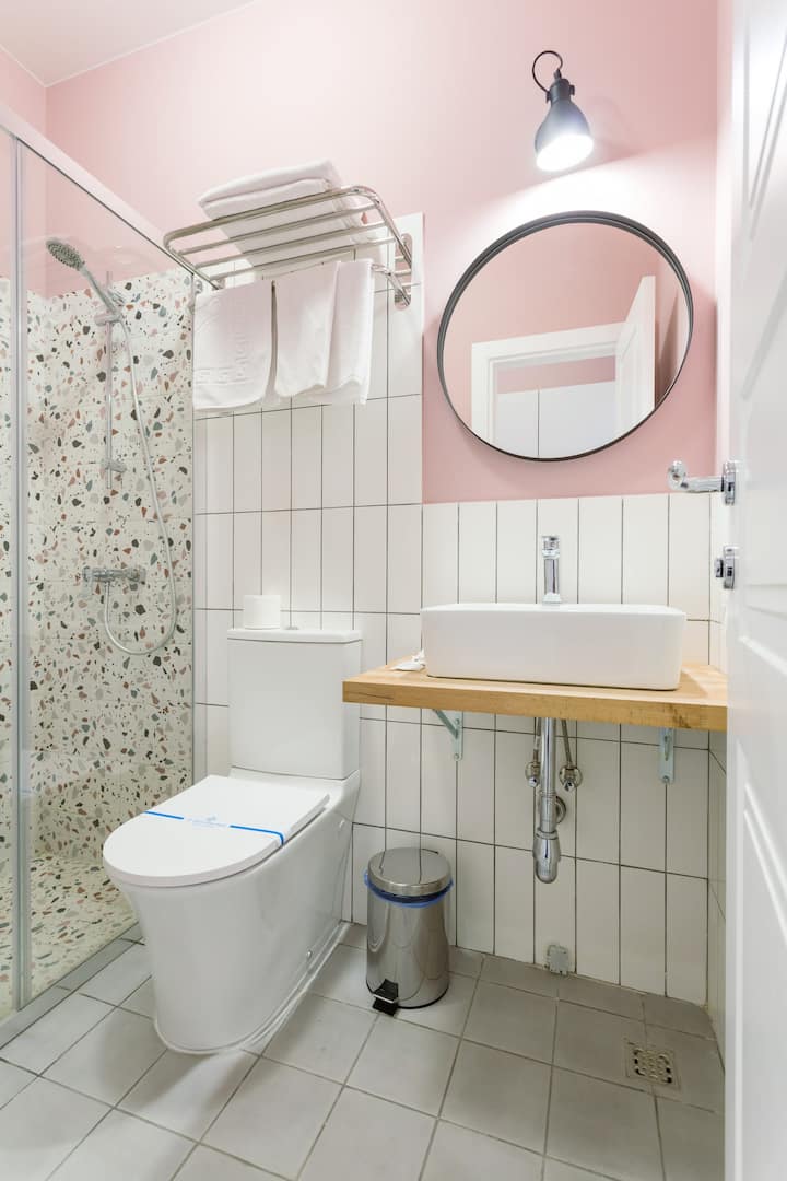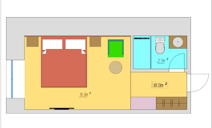 明亮舒适的单间公寓,带淋浴间