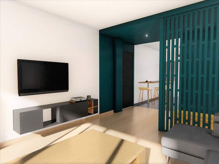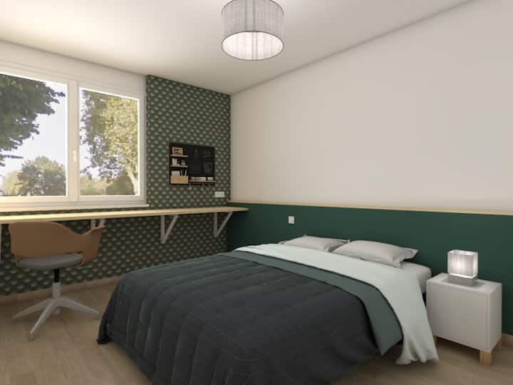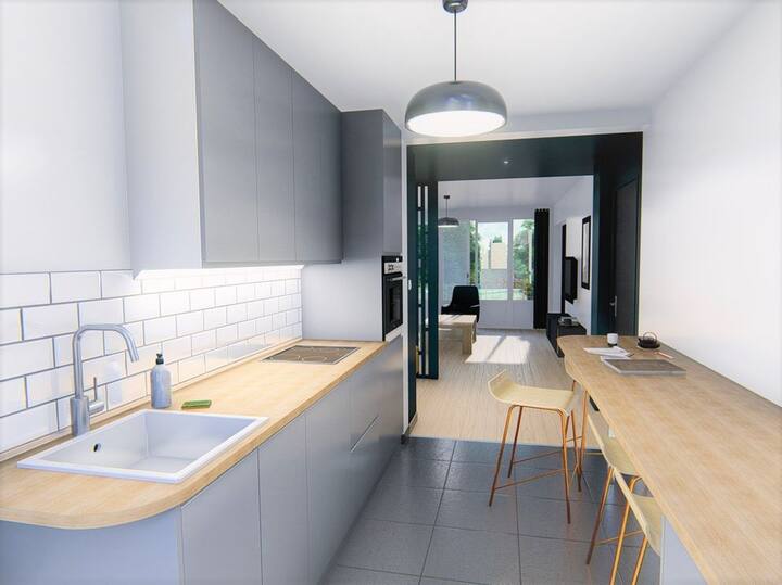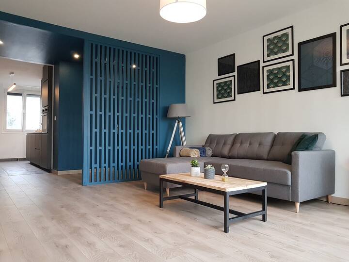 年轻夫妇是一套翻修公寓,面积为80平方米,位于雷恩西南部。 步行15分钟即可抵达Alma购物中心,在那里您可以漫步到这些商店,步行10分钟即可抵达超市。