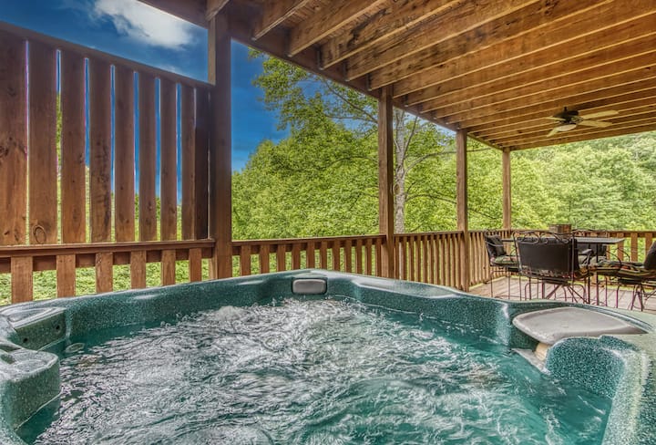 这间装饰精美的私人小木屋非常适合任何想要放松身心、方便且距离足够近的人,可以外出探索该地区的所有景点。 如果您正在寻找配备所有额外设施的完美度假胜地,「山间音乐」( Mountain Music )是您的完美小木屋。