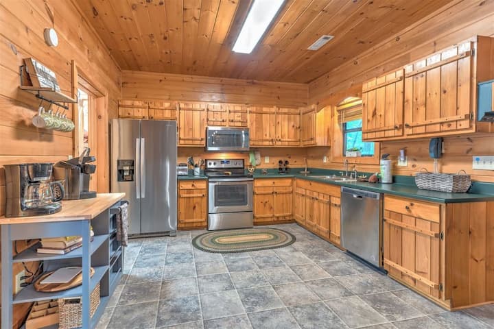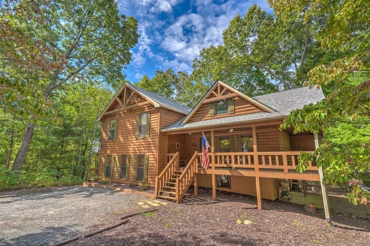Dogwood Lodge坐落在蓝岭和布莱尔斯维尔之间,邀请您体验轻松的山地生活,也欢迎携带宠物入住! 这座4卧室度假胜地设有围栏后院、星空下的热水浴缸以及室内外的舒适壁炉,为家庭、朋友和毛茸茸的同伴提供无忧无虑的度假体验。