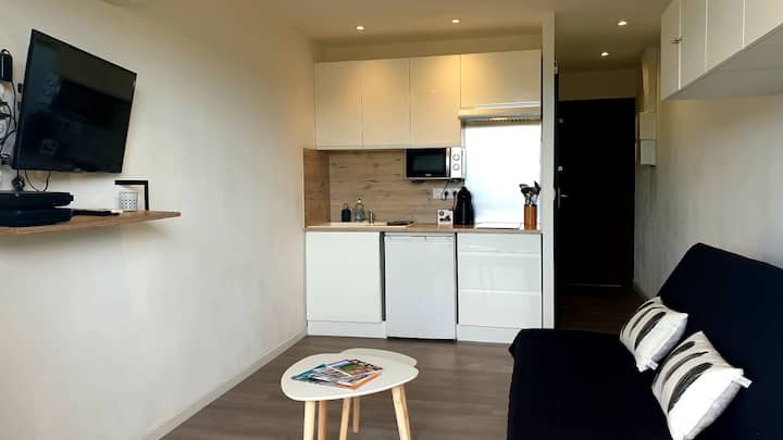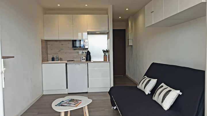 距离海滩100米的单间公寓,配有空调和停车位