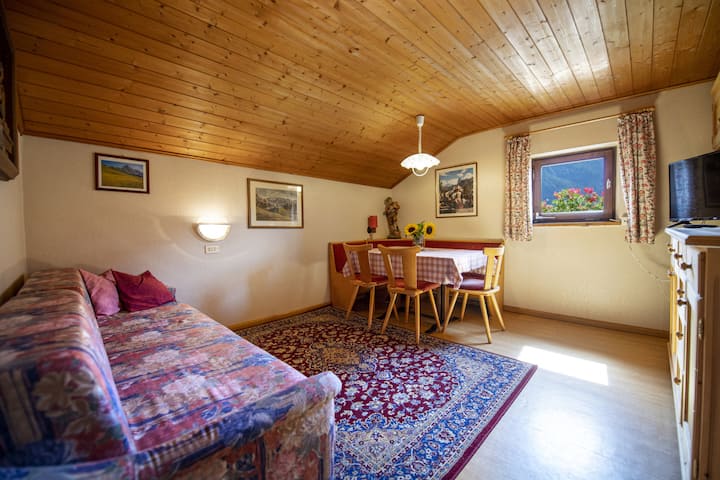 舒适的双卧室公寓,最多可容纳5人。< br > < br >它包括一间双人卧室、一间双床卧室、一个带单人沙发床的起居区、餐桌、卫星电视、独立厨房和带淋浴间的浴室和一个美妙的共享全景花园。< br > < br >公寓完全位于二楼,只能通过楼梯进入。< br > < br >这栋历史悠久的房子的宝石是朝南的大花园,您可以在那里欣赏Sassolungo和Sella山体的壮丽景色,与其他租户共用。< br > < br >厨房配备了烤箱、炉灶、咖啡机、冰箱、厨房用具、碗碟、刀具等。< br > < br >您将提供免费无线网络、床单和毛巾。< br > < br > < br > < br >重要信息: < br > < br > < br > > < br > < br >根据最近的省级法律,此公寓最多可容纳: < br > < br > -成人( 14岁以上) : 5 < br > < br > < br > -其余床位只能在出发时由13.99岁以下儿童使用< br > < br > < br >请注意,该法律受到主管当局的严格控制,违规将导致巨额罚款。 因此,在任何情况下都不能例外。< br > < br > Haus Trebe提供舒适的度假公寓,四周环绕着绿色植物,可俯瞰特伦蒂诺-南蒂罗尔的多洛米蒂全景。 从这栋房子里特别可以看到Sella Massif和雄伟的Sassolungo。< br > < br >这栋房子建于1557年,是整个山谷中最古老的房子之一,受到集合保护。 它位于圣贾科莫小村庄朝南的全景位置,步行仅需几分钟即可抵达著名的小教堂,配备了您在南蒂罗尔多洛米蒂山脉度过完美假期所需的一切。< br > < br >冬季,您可以乘坐免费的公共滑雪巴士在距离房源几米的地方停靠,几分钟即可到达滑雪缆车。 夏季,通往多洛米蒂山脉( Dolomites )最美丽山峰的徒步道就在房源旁边。< br > < br >在夏季,在房子前面停靠的免费城市巴士将在几分钟内带您前往奥尔蒂塞伊( Ortisei )市中心。 您还可以在舒适的花园中享受多洛米蒂山脉的温暖阳光,享受躺椅和Sassolungo景观。< br > < br >这栋度假屋的宝石绝对是美丽的阳光花园。 它面向南方,可欣赏到独特、令人惊叹的多洛米蒂山脉全景。 真正的热门景点! < br > < br >房主是一位经过认证的徒步导游。< br > < br >传统餐厅Somont ,您可以在这里品尝最好的当地美食,仅几步之遥。 所有其他商店和服务都位于Ortisei Val Gardena村的中心地带。< br > < br >房子Trebe提供户外停车场、无线网络、自行车和滑雪板存储、毛巾和床单免费使用。< br > < br >您是否一直梦想在真正的传统花园别墅度过您的假期? 这是体验真正的山区居民多洛米蒂山脉的好机会! < br > < br >入住时间: 15:00 - 19:00在MUSE。位于Via Arnaria 9a, Ortisei的度假办公室< br >有些房子在房子里有远程入住,密码访问权限,我们要求您至少提前48小时联系我们,以检查您预订的房源是否属于其中。< br >退房: 8: 00-9: 00在MUSE。在Via Arnaria 9a的度假办公室(带密码访问的房屋除外) < br >并非所有房屋都允许携带宠物入住。 为了避免误会,如果您打算携带它们,请通过单独的邮件告知我们。 在允许携带宠物的房子里,每只动物每晚收取€ 15.00的附加费。 婴儿床、高脚椅和婴儿栏杆需付费,且必须提前预订。< br >晚上7点后入住,但需在抵达当天下午6点前提前通知,并提交所需文件并通过信用卡支付旅游税+额外费用入住< br >暖气开启(在此期间,如果室外温度超过15摄氏度,或室内温度达到或超过21摄氏度) < br >除非广告中另有说明,否则不允许为电动车辆或其他存储设备充电。 如果允许,只有在MUSE.假期确认后才能使用,并收取可变的额外费用。< br >如果浪费电力、燃气或其他公用设施,则需要支付额外费用(例如:在没有房客的情况下全天开灯,打开窗户供暖)。< br >房客有责任每天至少打开两次窗户,一次早晚一次,每次至少5分钟,让湿度离开公寓,避免模具形成。 如果未遵守此规则,且房客离开时发现霉菌,则将收取恢复公寓完整性的费用。< br >由于地理位置,无线网络可能会中断或变慢,因此这项服务并不总是保证。< br >房子不配备烹饪香料或洗发水、肥皂等各种消耗品等食品……任何消耗品仅作为迎宾套装,在您住宿期间不会被补充。< br >进入公寓所需的付款是旅游税+预授权,通过Swikly通过Swikly通过Swikly支付500欧元的信用卡押金。< br >如果事先未同意,入住时提供的实物钥匙和其他配件将退还给MUSE.度假办公室在Ortisei的Via Arnaria 9a ,否则将收取50欧元的钥匙收取。< br >最终清洁金额仅包括标准清洁。 不包括清洗碗碟和将垃圾从公寓清理到指定位置。 因此,过于肮脏的公寓、未清洗的碗碟和未清理垃圾将根据工作时间过多的实体进行修改,并收取可变的额外费用。< br >重要提示:我们与领先的度假租赁押金提供商Swikly合作。 在入住开始前,您必须在线支付押金,我们不会从您的信用卡、预授权或屏蔽中扣除任何押金。 这甚至不会影响您的信用卡上限!