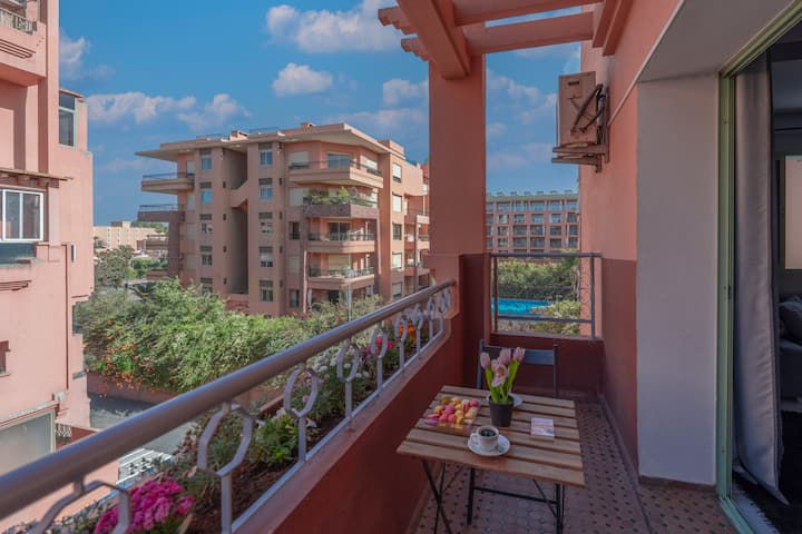 位于Gueliz Med 6中心的豪华舒适公寓