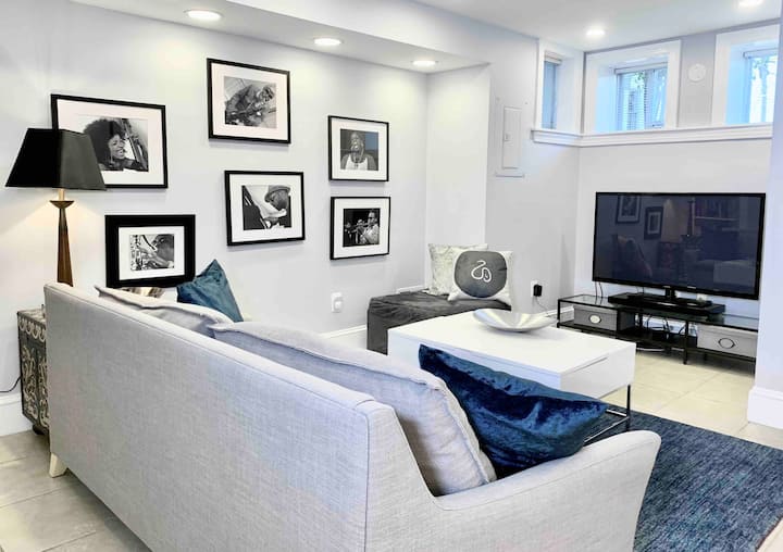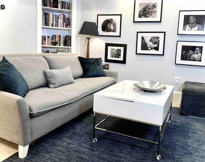 我是一名爵士乐手,白天通常在家(您可能会听到我在练习!), Eva在一家国际通讯社工作。 公寓内有她拍摄的全国各地著名爵士乐手的照片。