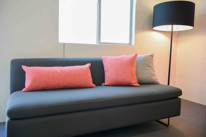 新装修的客房单间公寓,配有独立的可上锁入口、全新的非中央独立空调、快速无线网络、388个频道的有线电视、欧洲电器、设计师家具和免费停车位。 位于一条安静、安全的绿色街道上,步行即可抵达鲁尼恩峡谷( Runyon Canyon )、WeHo、日落大道( Sunset Strip )、星光大道( Walk of Fame )、格 使用消毒产品进行专业清洁。 短期出租:每人每晚 170 美元。