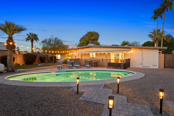 探索坦佩(Tempe)的中世纪现代沙漠绿洲,这是一座精美的1961年中世纪现代主义瑰宝。这座时尚的度假屋位于天港机场、春季训练体育场、斯科茨代尔老城区、凤凰城中心、Mill Avenue和ASU附近,将复古魅力与现代化设施融为一体。无论您是来这里工作、玩耍还是放松度假,我们的中心位置都能让您轻松探索山谷的最佳去处。体验永恒的设计,无与伦比的便利。您的完美住宿体验从这里开始!