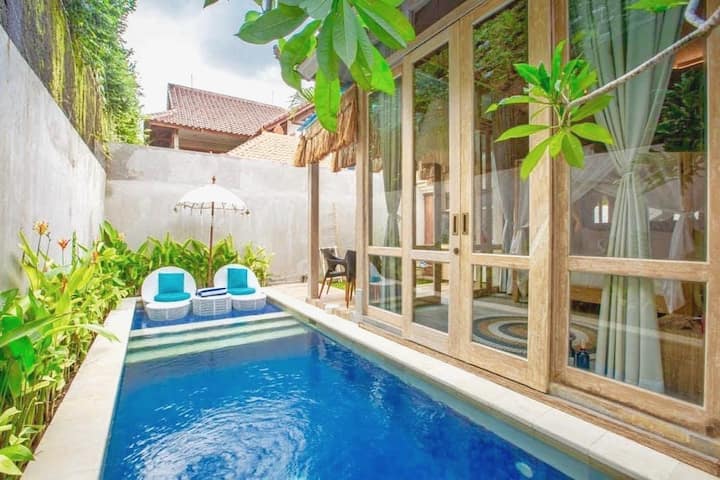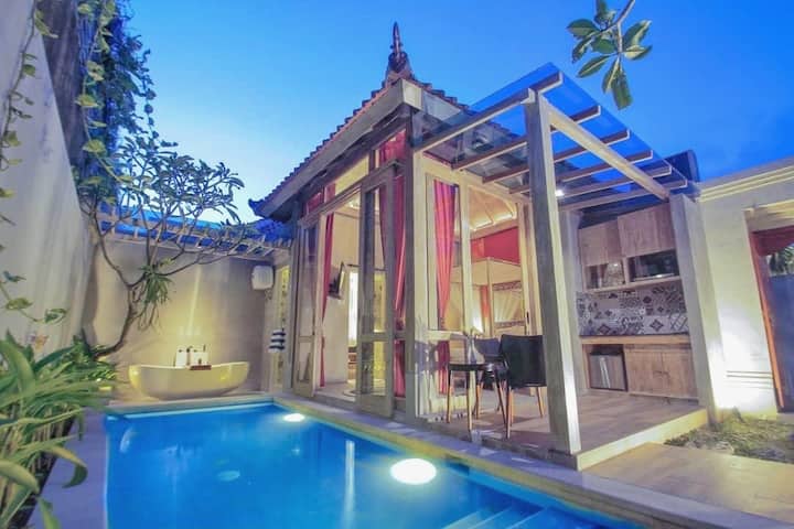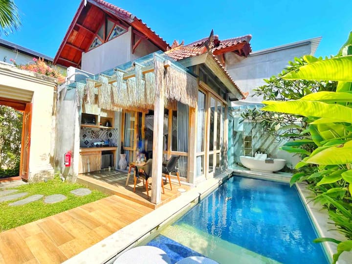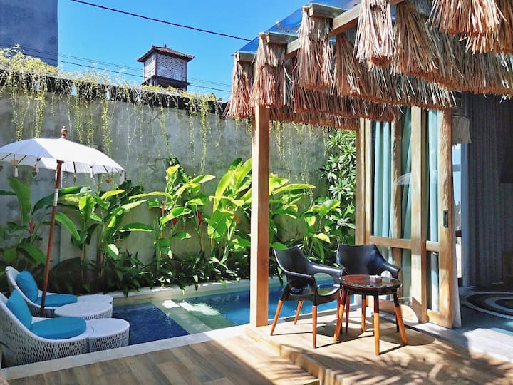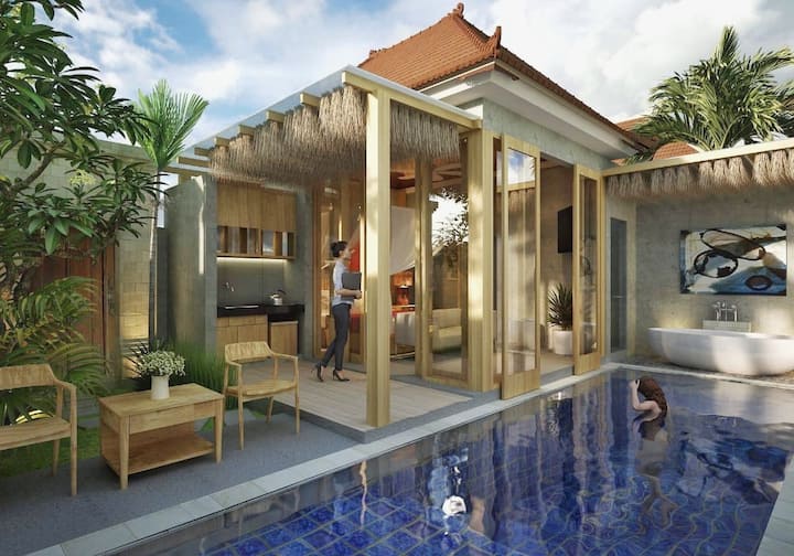 该别墅是一座私人单卧室迷你泳池别墅,提供24小时接待,餐厅和水疗服务。 它温馨舒适,在Simply和Chic Concept之间融合在一起。 别墅非常适合情侣和蜜月旅行者入住,他们希望在库塔和机场( Kuta )和机场( Kuta )和机场( Airport )的热闹街区附近寻找浪漫的度假胜地。