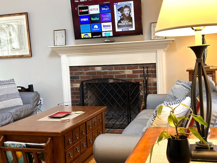 我们经过翻新的三卧室房源是一个舒适的秋季度假胜地,楼上有两间宽敞的卧室,楼下有一间。 两个全功能卫生间,包括一个带深浴缸的浴缸,让您在探险一天后轻松放松身心。 宽敞的开放式厨房非常适合准备丰盛的秋季餐点,配备更新的电器,非常适合从感恩节盛宴到简单的苹果派。 在壁炉旁热身,在大型Roku电视上观看您最喜爱的秋季电影,配有舒适的毯子可供依偎。