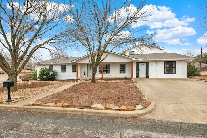 这栋精致的两层房源坐落在迷人的住宅区,距离弗雷德里克斯堡市中心仅6分钟路程,最多可容纳12位房客,完美融合了舒适与奢华。 这座度假胜地设计精美,室内空间宽敞,配备顶级便利设施,以及带桑拿和跳水池的令人难以置信的户外水疗室,是寻求在得克萨斯山乡中心放松和娱乐的家庭和团体的理想选择。