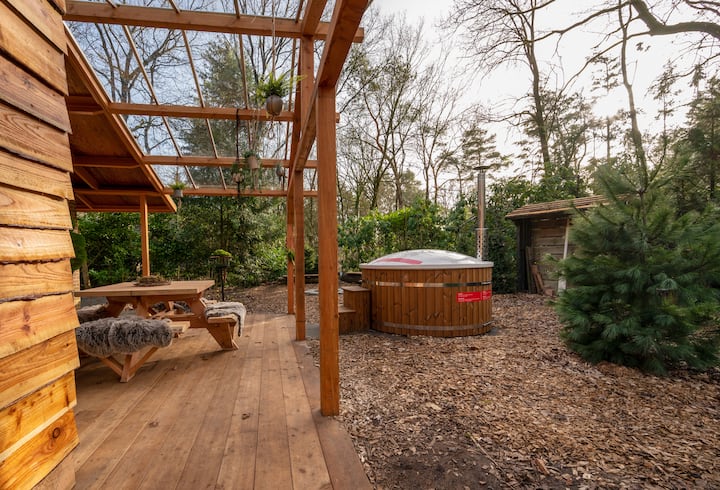 享受秋千长凳,欣赏森林景观,聆听鸟鸣,或发现好奇的松鼠。 在林地散步后,您可以在火坑旁取暖,或在私人桑拿房和热水浴缸中放松身心。 非常适合热爱大自然、健康养生和共度温馨时光的人士。
