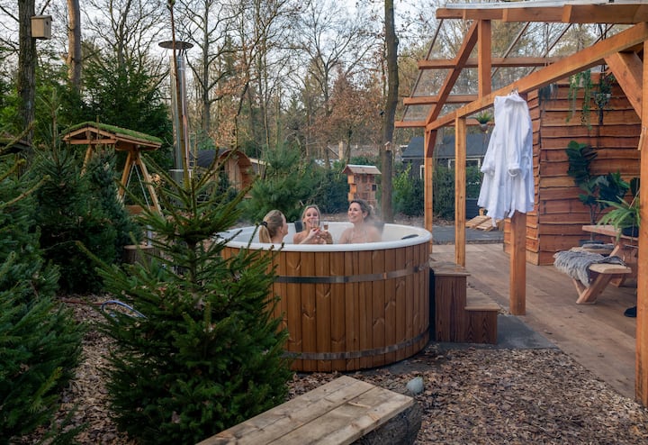 斯堪的纳维亚风格的豪华平房,配备私人客房和独家健身设施,坐落在Rheezerveen附近的Vechtdal森林中。 您可以在热水浴缸、芬兰桑拿房、壁炉或户外火坑旁放松身心,享受被大自然环绕的露台。 放松身心的宁静度假居所。 👉 ZEN-Bungalows有几个主题平房-请查看我们的地址以了解更多信息。