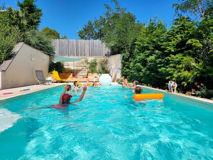 这座简陋的住宅经过彻底翻修,从花园(泳池边设有凉台/遮蔽的餐前酒台)到3间阁楼卧室,都营造出温馨的氛围。