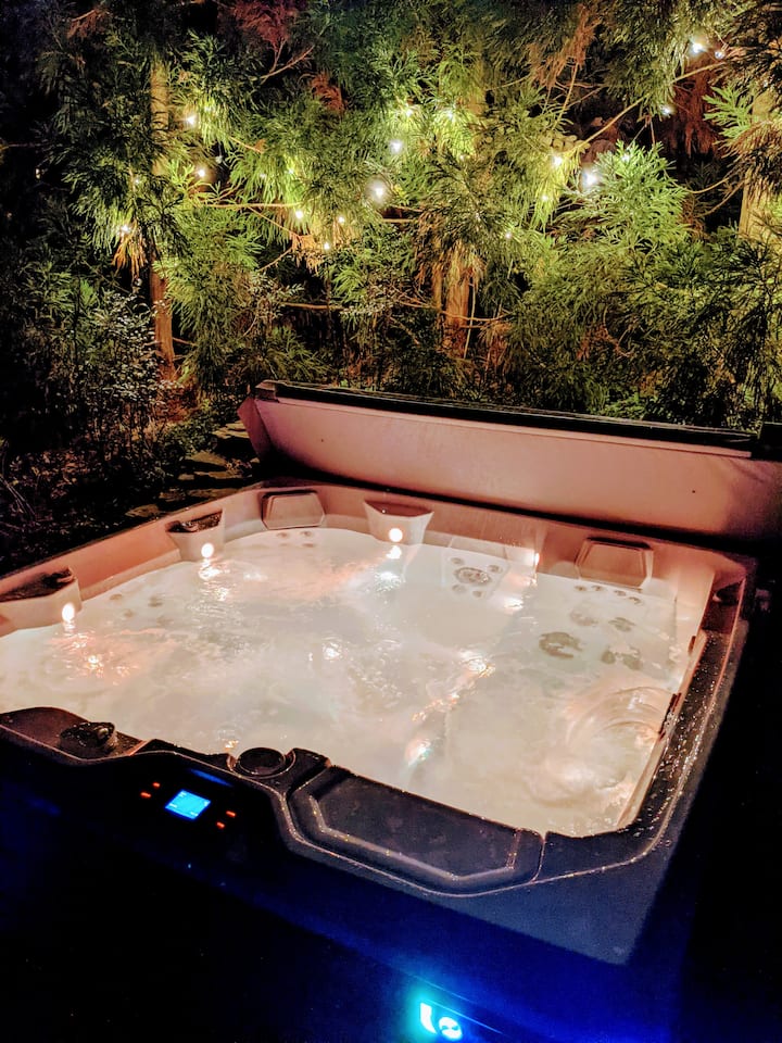 ( 1 )私人露台绿洲内有六人盐水室外热水浴缸。 2021年推出。