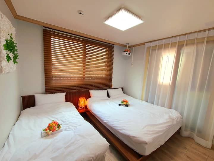 2. 行李寄存/2间客房/豪华双层床/停车场/酒店床上用品/投影仪/净水器/坐浴盆/Elbe/Seongsimdang/棒球场