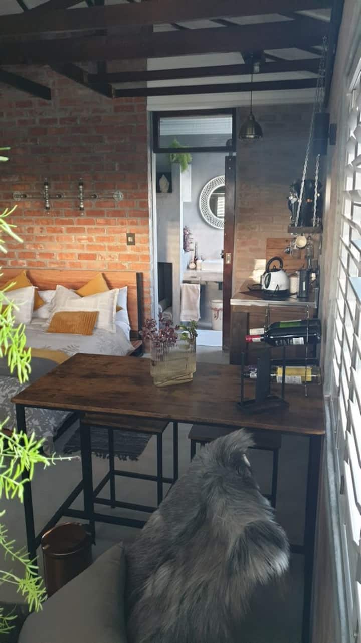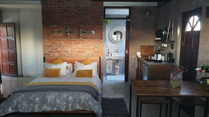 带小厨房的工业风1床阁楼公寓。
