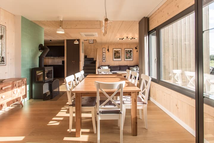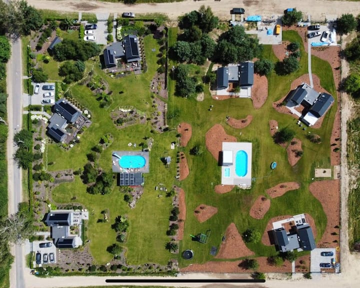 在Siemiany本身,我们完全巧合地降落。 房地产经纪人想给我们看一个完全不同的地块。 当时是秋天,道路穿过金色和酒红色的树木,所以街区看起来很棒。 我们不再继续寻找了——就是它。 在设计、施工和室内设计过程中,我们关注每一个细节,并注意那些作为酒店和公寓的房客会让我们感到烦恼的事情——这就是为什么我们不会用完插座、衣柜中的衣架或存储空间。 我们热爱烹饪和美食,因此厨房设施齐全。 公共区域也体现了我们的热情——这里绿意盎然,有我们孩子喜欢的游泳池和带大桌子的凉亭(可容纳所有朋友)。