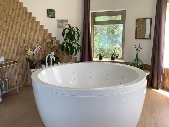 在热水浴缸中放松身心