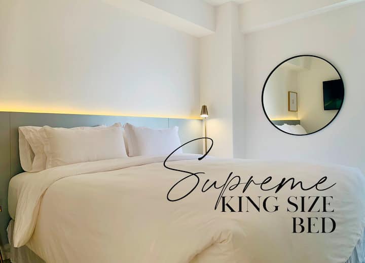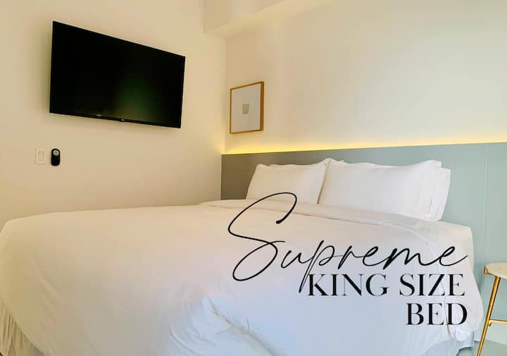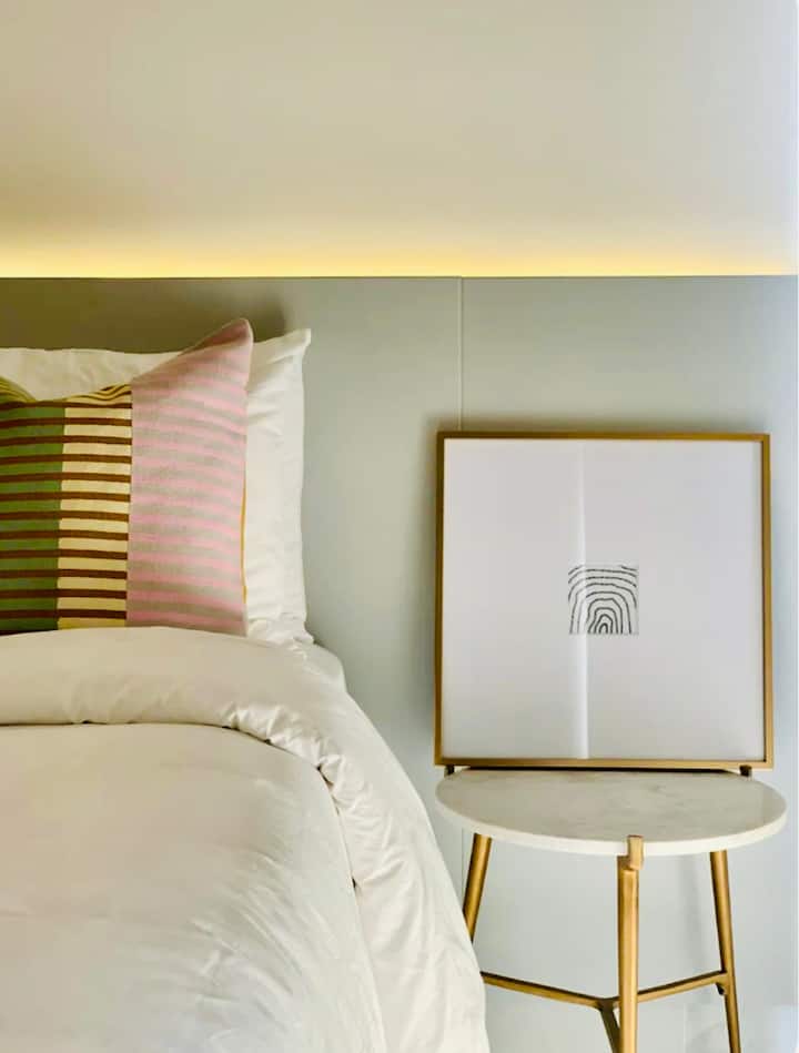 MoDERN公寓+ 2张加大双人床+靠近海滩!