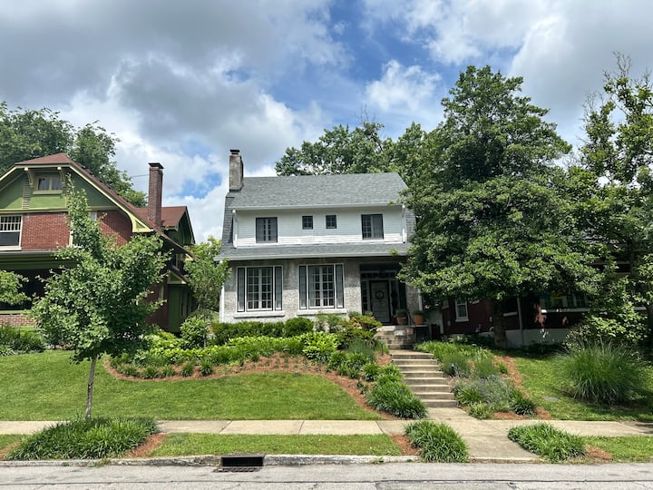 我的房源位于高地中心的迷人灰泥, 2层楼,提供两全其美的体验:距离丘吉尔唐斯( Churchill Downs )、路易斯维尔市中心、I-65、I-264和其他景点仅几分钟路程,是一个宁静而放松的度假胜地。 这个美丽的房源有3间全功能卧室和2间全功能卫生间,可容纳6人。 厨房通往宽敞的餐厅、起居室和日光浴室。 此房源拥有舒适的起居室和楼上休息区,空间充裕,让您放松身心。 亮点:在带顶棚的后门廊上享用您的薄荷Julep。 这栋房子干净、舒适和温馨,是享受蓝草( Bluegrass )和肯塔基老家园( Old Kentucky Home )的完美周末。