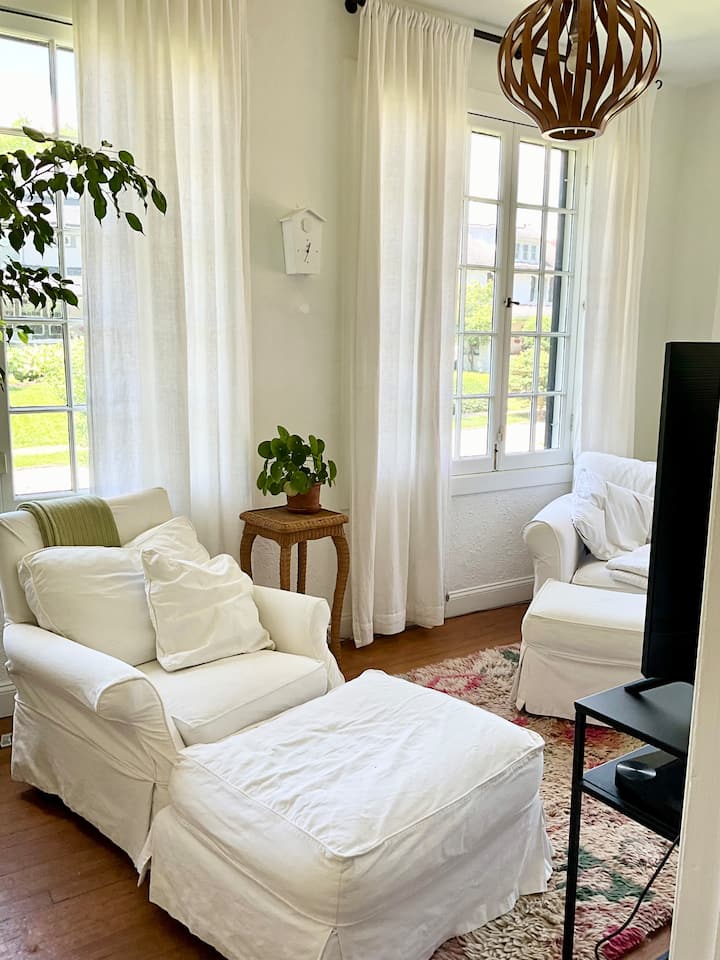 我们会在您抵达时欢迎您,并帮助您安顿下来,但除此之外,您可以享受我们房源的隐私。 我们就在附近,如有需要,可随时为您提供帮助。 在您住宿期间,车库中的艺术家工作室将使用,我们偶尔会通过地下室外门进入,检查猫。