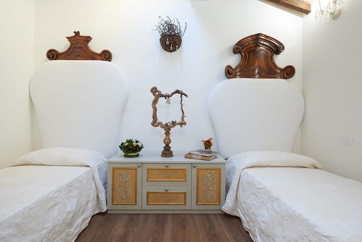 迷人而迷人的公寓,位于历史中心,最近进行了装修。 该房源有4间卧室,最多可容纳8名房客,其中3间配有双人床,另一间配有2张单人床。 两间独立卫生间和一间带淋浴间和水槽的卫生间、设备齐全的厨房、洗衣机、空调和无线网络。 这套公寓可追溯到十四世纪,充满了充满活力和历史气氛,最初的壁画凸显了这种气氛。
