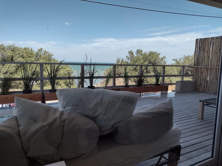 海滨公寓,带露台,距离高尔夫球场5分钟