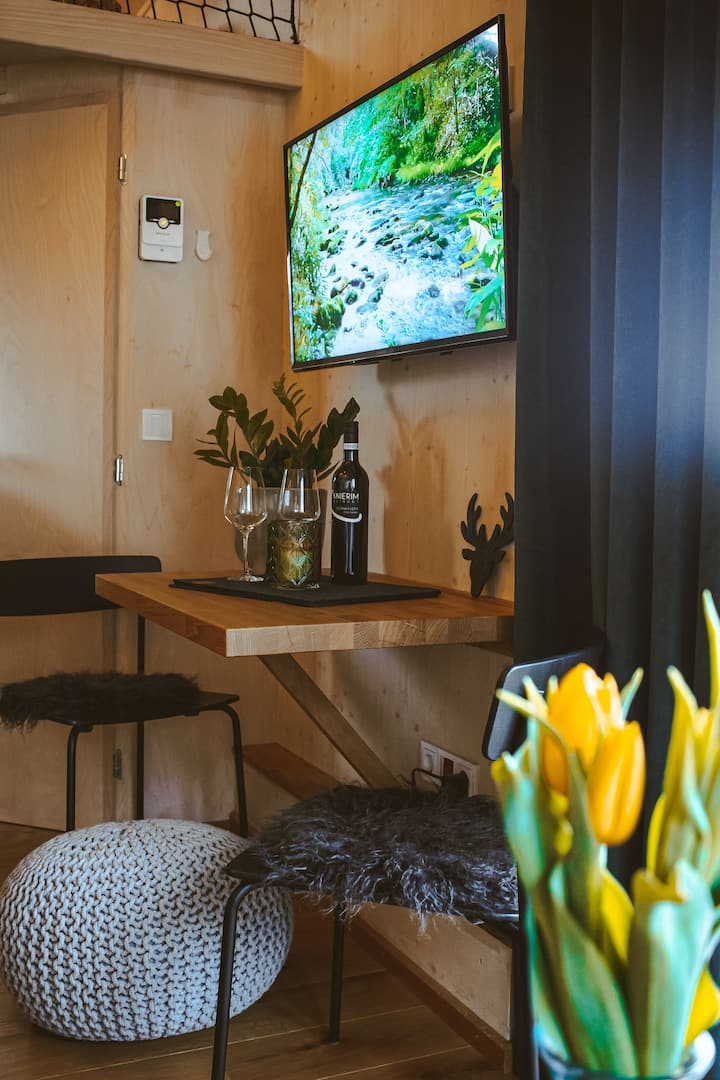 带热水浴缸的现代微型住宅