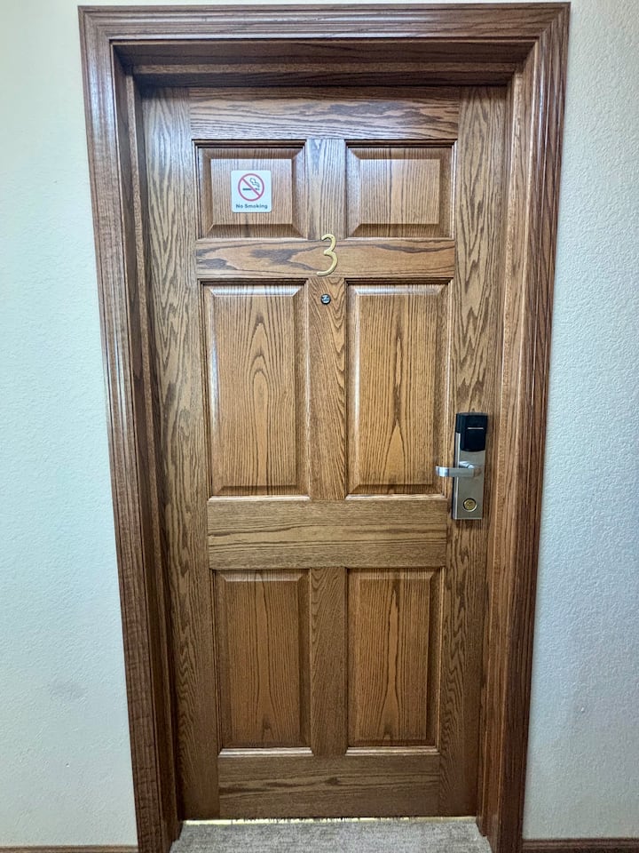 抵达后,您首先会注意到属于我们露营地的标志,露营地位于同一处房源内。 继续沿着Americas Way前行,您会看到我们的主办公楼,客房套房就在旁边。 酒店房客可从东楼门进入,通往二楼客房。 请参阅您的爱彼迎收件箱,了解完整的入住说明、钥匙领取信息和大楼出入详情。