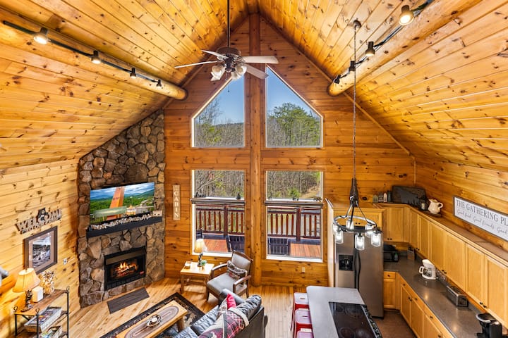 不用再搜索了,Rising Wolf Lodge是您度假的小木屋。 这间2300平方英尺的小屋提供私人环境,有很多停车位,靠近城里的所有景点、购物和餐饮场所。 坐在环绕式门廊上,欣赏附近山脉的美景,享用晨间咖啡或晚间葡萄酒。 Rising Wolf Lodge拥有您在小屋中寻找的所有额外设施。 主层设有拱形天花板和石头燃气壁炉。 厨房设施齐全,配备3人座的岛式餐桌和6人座的餐桌。 每间客房均配备免费高速800 mbps无线网络和4K Roku智能电视-您只需使用个人登录信息即可观看任何流媒体服务!所有卧室均配备USB充电器。 一天结束时,您可以在下层门廊上享受热水浴缸,也可以在后院火坑旁坐下,火坑外有几把椅子可供您坐下。房客可以在附近的便利店或杂货店挑选一捆木柴,用于外面的火坑。如果您正在寻找位于大烟山附近的乡村小木屋,并且方便前往田纳西州的加特林堡和鸽子堡地区,那么请立即预订Rising Wolf Lodge Cabin!