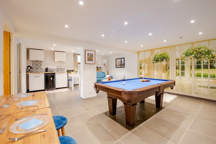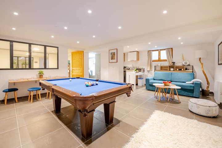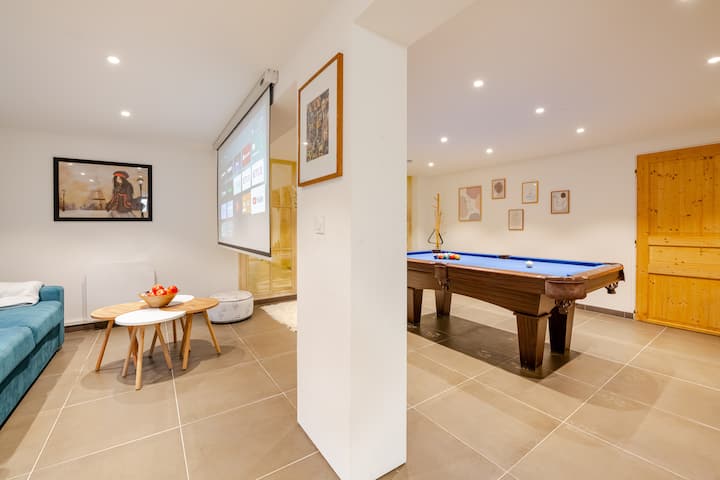 台球桌、家庭影院和标准双人床