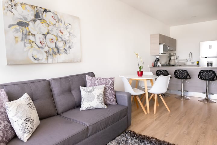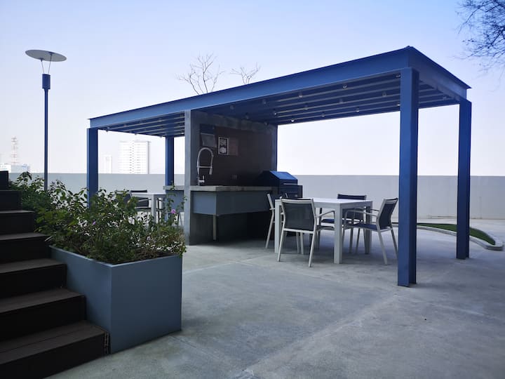 豪华1卧公寓204带露台,配备泳池/空调/健身房/公园/商场