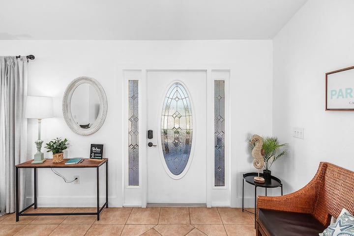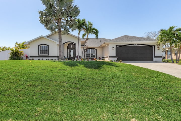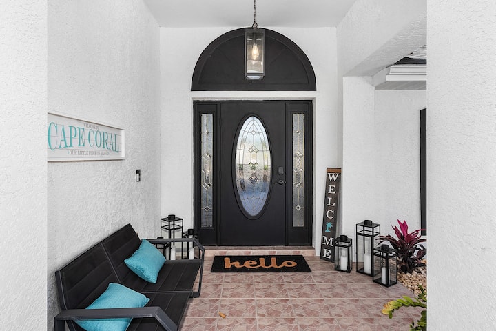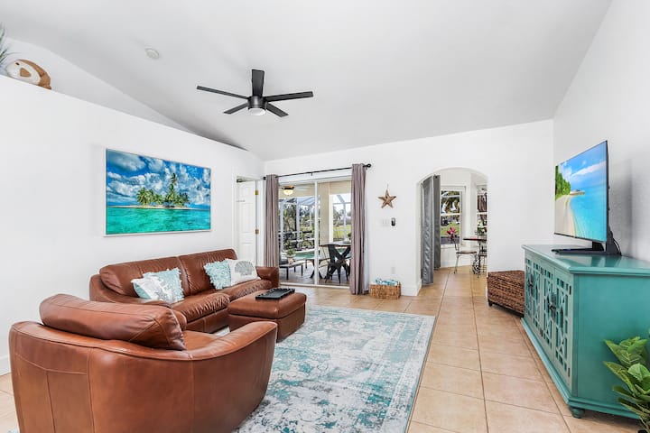 宽敞,让您尽享家一般的舒适,靠近一切……购物、餐厅、水上乐园、高尔夫球场和Fort Myers!天堂湾(Paradise Cove)是位于珊瑚角(Cape Coral)的美丽运河房源。这间精致的4床、2.5浴室度假屋拥有一个宁静的阳台和温水盐水泳池区,配有许多舒适的家具和燃气烧烤架。运河旁的阳台和露台都是放松身心的完美场所,可欣赏日落美景。是的,无线网络也可以使用!