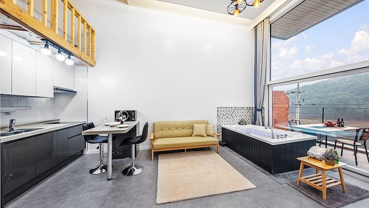 双层公寓: 1间客厅+ 1间厨房+复式卧室A (双人床) +卫生间1 *水疗设备