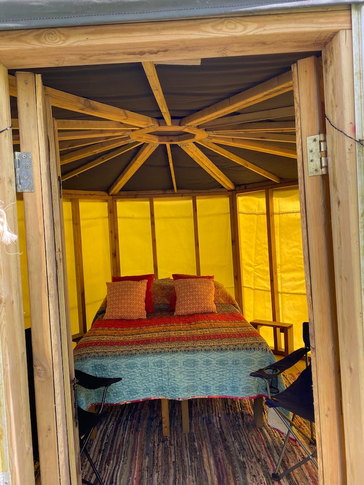 每个木质和帆布胶囊宽约4米,高度充足,无需弯腰,非常适合情侣入住,配有合适的双人床。 如果您想要额外的人,我们提供2张非常舒适(Vango 10)的自充气床垫。 每个吊舱最多可入住4人。 请注意,我们提供舒适的双人床垫,配有床垫保护套、羽绒被(今年新增)、枕头和毛毯,但不提供羽绒被套、床单、枕套和毛巾。 有坐垫和地毯,太阳能供电的彩灯,露营椅和凳子。还有篝火。