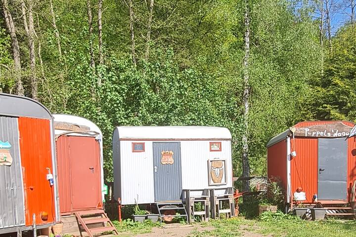 牧羊人的小车,田园诗般的牧场。