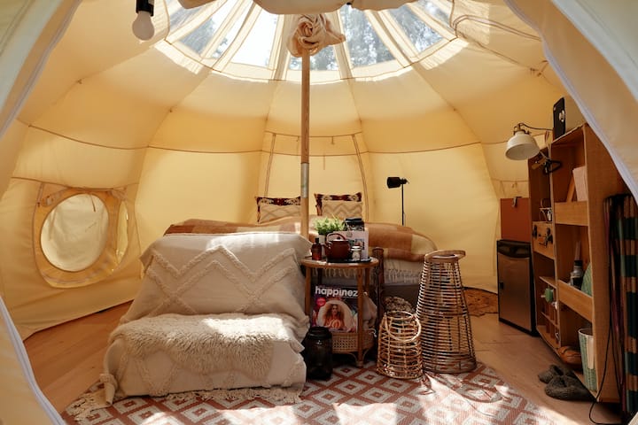 在岛屿的私人区域体验莲花帐篷