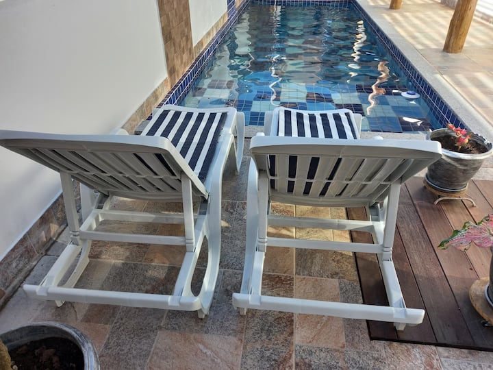 房源带私人游泳池,可住8人,5分钟到海滩