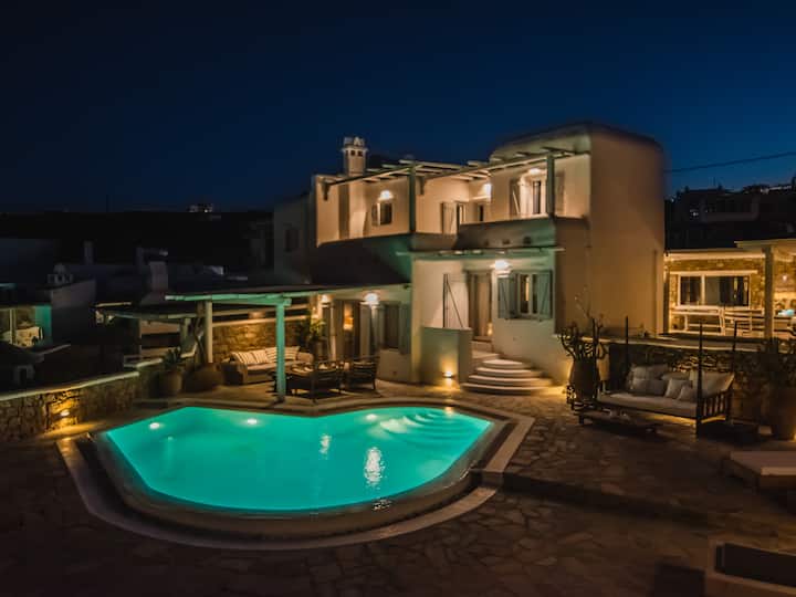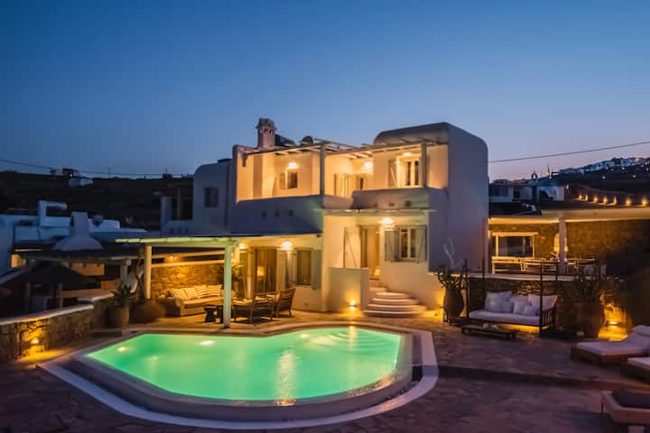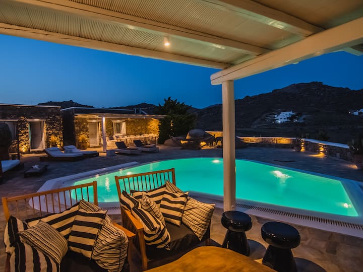 别墅靠近米科诺斯岛三个最好的海滩:Agia Anna、Kalo Livadi和Kalafatis。 这里距离Ano Mera的市场、药店和面包店也很近,距离米科诺斯的Chora (中心)约10-15分钟车程。