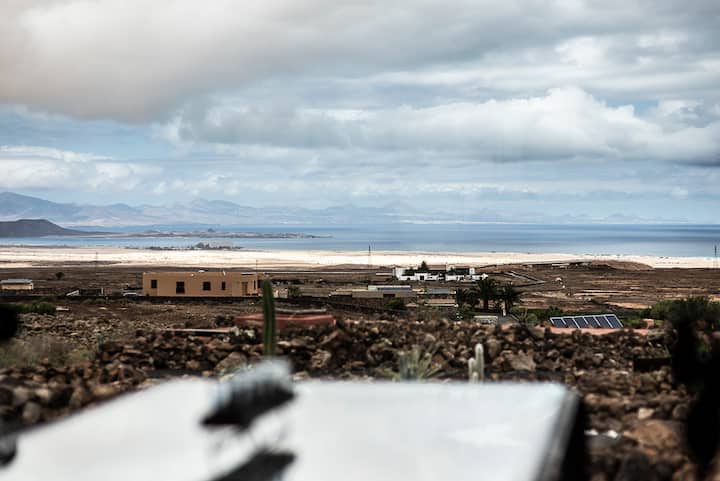 令人惊叹的「Dunas de Corralejo」就在您脚下,独一无二,可透过客厅的全景窗户欣赏,并在您眼前展现其全部美景。 甚至可以在背景中看到洛斯洛沃斯岛和兰萨罗特岛。