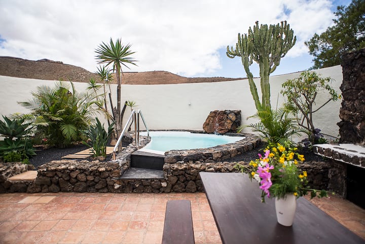 Finca在160平方米的起居空间内为您提供绝对安静的Paraíso ,在您自己的热水浴缸中享用不受干扰的饮料(夏季高达29 ° , 1月和2月不能保证水温24 ° ) ,或在隐形庭院中在傍晚的阳光下烧烤。 您可以从全景窗户、兰萨罗特岛( Lanzarote )和洛斯洛博斯岛( Los Lobos )直视大海。 距离「Dunas de Corralejo」(最近的海滩)仅约20分钟车程。