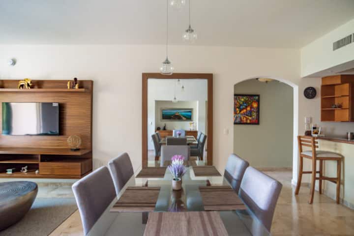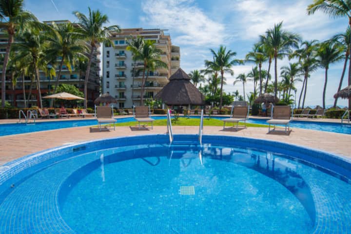 从公寓步行5分钟即可抵达天堂村购物广场( Paradise Village Shopping Plaza )。 附近还有其他便利设施和必需品,如医院、药店和自动取款机。此外,还有一个小型动物园,里面有狮子、猴子和鸟类。 天堂村( Paradise Village )的不同房源之间的穿梭巴士每30分钟一班,方便您享受愉悦。 您还可以参观巴亚尔塔港( Puerto Vallarta )市中心,距离这里仅15-20分钟车程,那里有令人惊叹的夜生活、文化和美食。