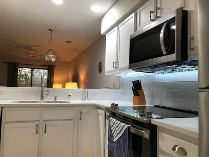 位于小河的漂亮的一楼双卧公寓