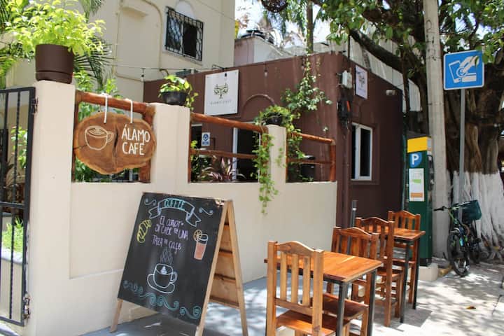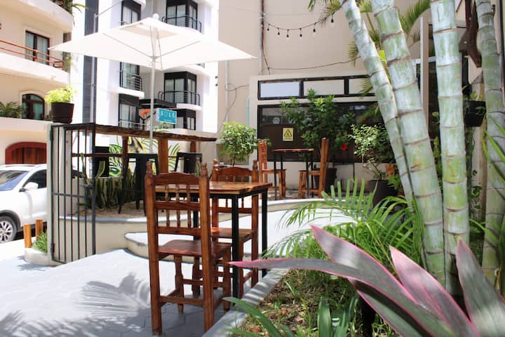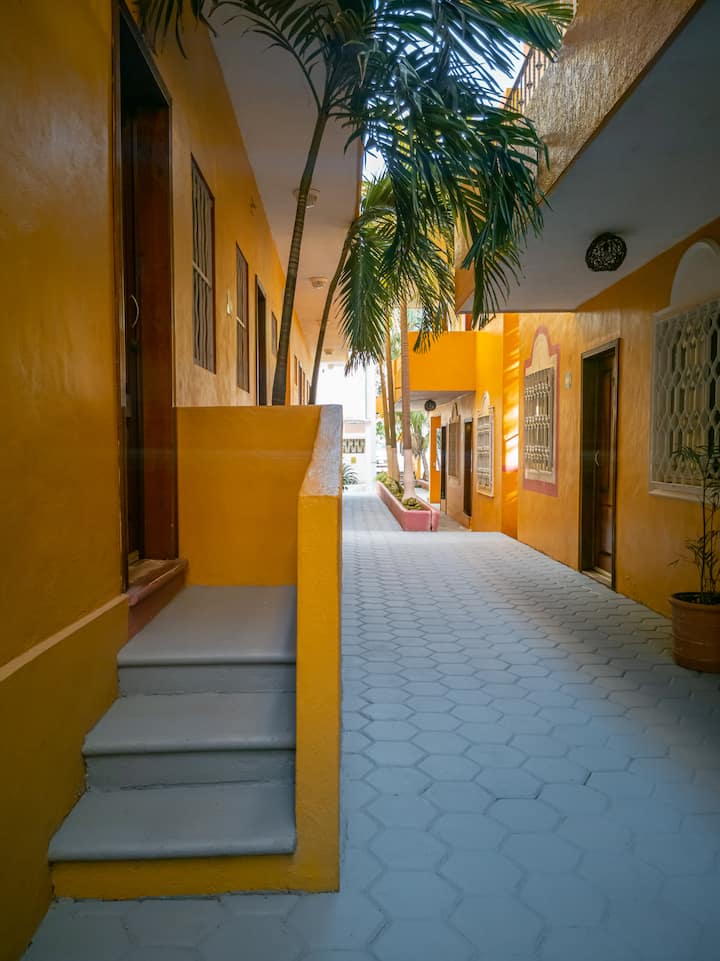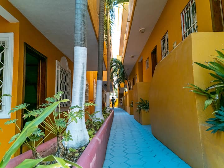 我们的房间位于普拉亚德尔卡曼的最佳区域。我和我的同伴很乐意接待他们,并满足他们的所有需求:)我们距离海滩和第五大道仅几步之遥,一切都很方便。 年轻的旅游业会喜欢我们靠近该地区的夜生活场所。 Cocobongo、Mandala、Abolengo距离这里半个街区,非常适合在夜间寻找乐趣的旅游景点或距离海滩上最佳最佳景点仅几米之遥。 我们的房间宽敞温馨,卫生间有便利设施、日常清洁和24小时接待。