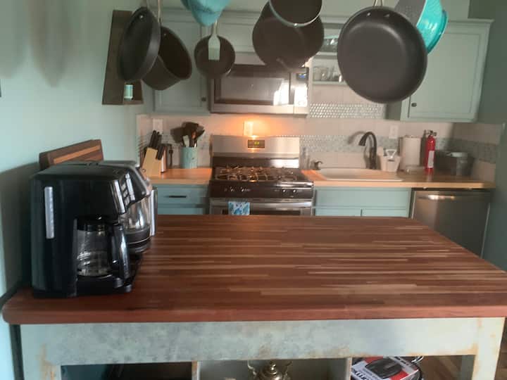 我们坐落在山上,景色广阔,邻居很少,周围环绕着数百英亩的森林(由他人拥有)。 但是,开车前往I-64仅需3分钟! 韦恩斯伯勒(Waynesboro)距离山下仅5分钟车程,拥有小镇的所有便利设施:)这里有五家杂货店、餐厅和许多大型商店,以及小型个人精品店。