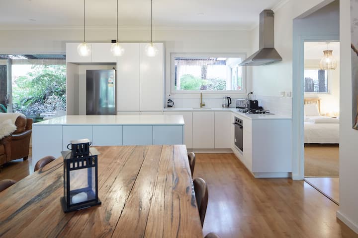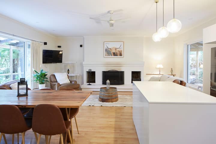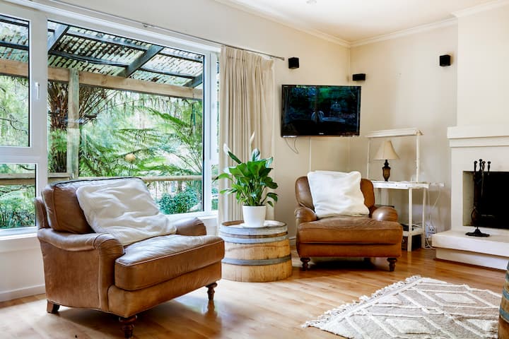 半独立的Windmill Lodge是一座经过精心装修的石灰岩小屋,可携带宠物入住,每个窗户都可以欣赏宁静的森林景观。 明亮的壁炉和反向循环的舒适性让您放松身心,而时尚的新厨房则融合了魅力和实用性。 优雅的卫生间配备地暖、环境照明和俯瞰雨林的深浴缸。 外面有一个蕨类植物林立的庭院。 仅限安静享受—禁止派对,晚上10点后禁止喧哗。