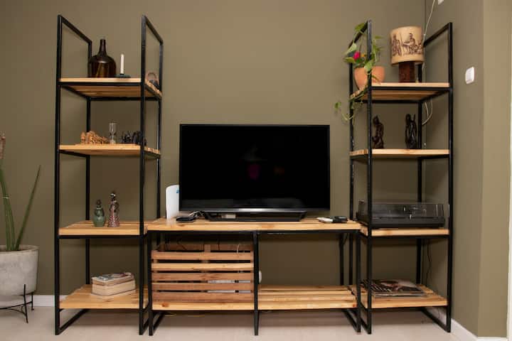 中央2间卧室,配备2张床、宽敞的露台和办公室